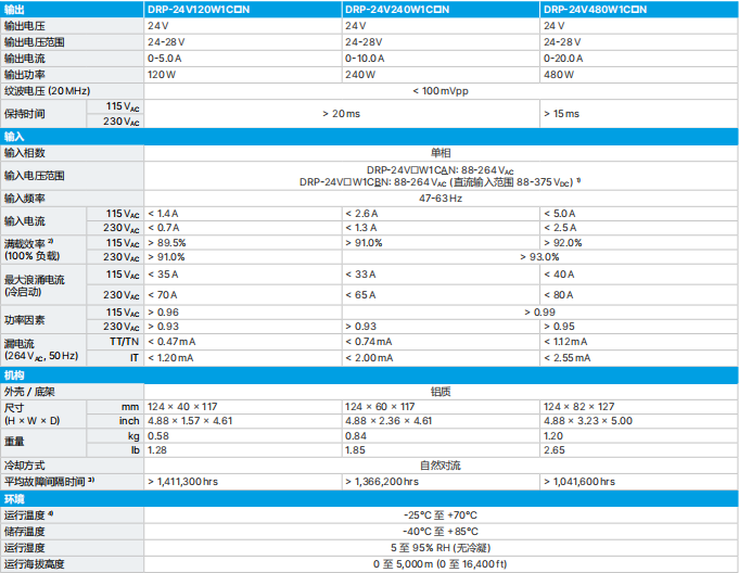 DRP-24V480W1CN台达电源